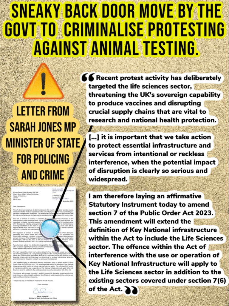 Please send this email to your MP to oppose proposed amendments to the Public Order Act 2023, which could see people imprisoned for up to 12 months for protesting against animal testing.🚨